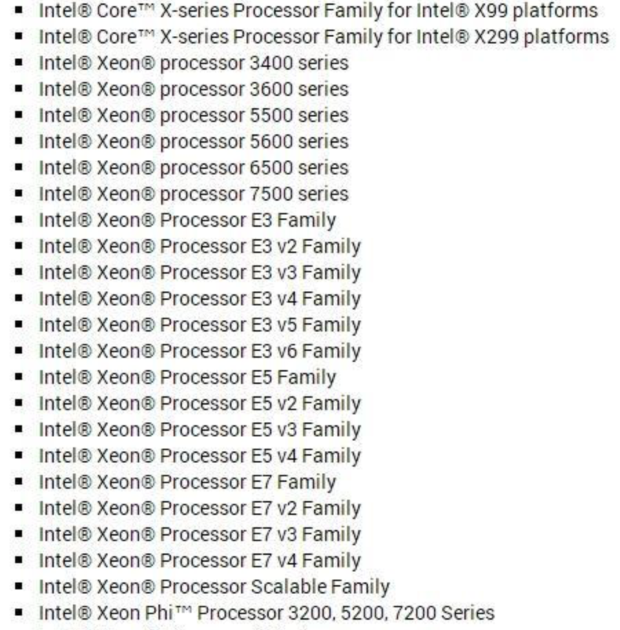 這些CPU的配置在虛擬化平臺、服務器數據中心平臺的使用率非常高,集中在E5、E7的主流配置都波及。